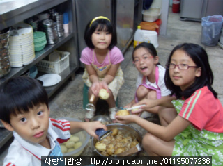 아이들이 직접 감자를 손질하네요~~