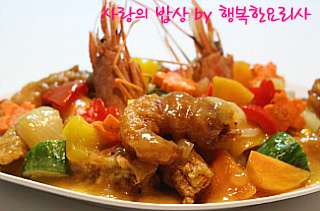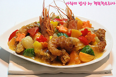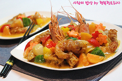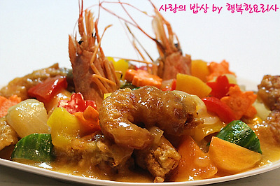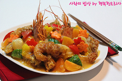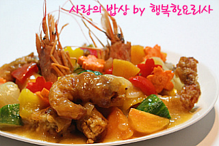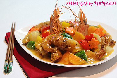 10. 튀긴새우에 9의 소스를 끼얹는다.