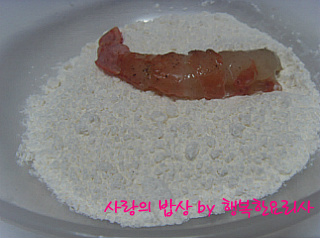 5. 3의 새우에 감자전분,4의 튀김옷을 입혀