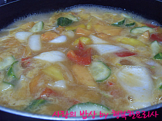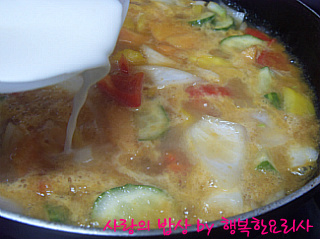 9. 8에 전분물 적당량을 넣고 저어서 농도를 맞춘다.