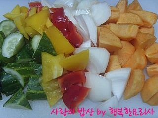 양파1/2개씩,당근 1/3개,단감1개,감자전분5큰술,