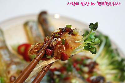 올리고 양념장을 끼얹는다.