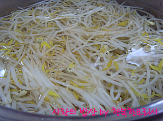 익히고 숙주나물도 데쳐 찬물에 헹궈 물기를 뺀다.