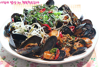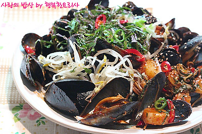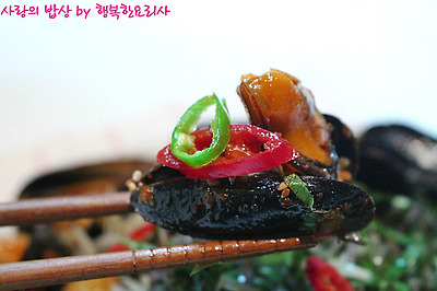 1. 홍합은 깨끗이 씻어 수염을 제거하고 물 약간 넣어 살짝