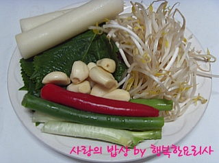 홍합400g,숙주2줌,가래떡 2개,깻잎10장,대파1대,
