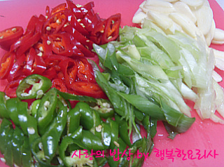 청양고추,대파는 어슷 썬다.