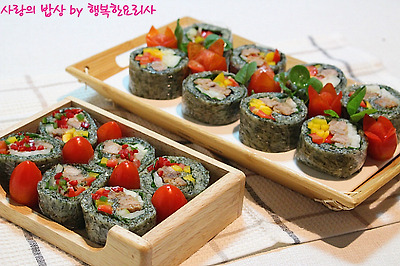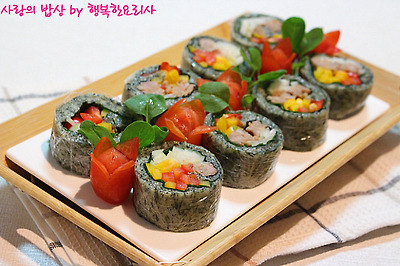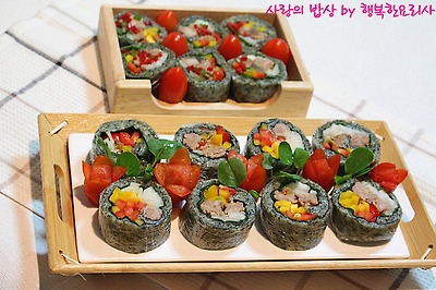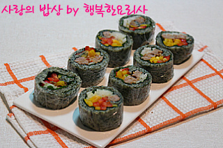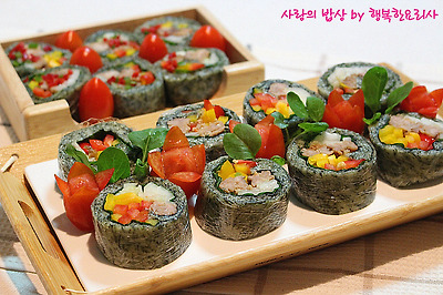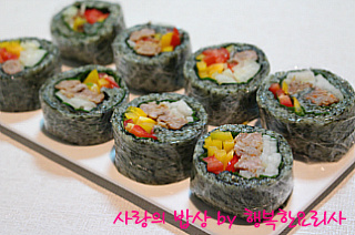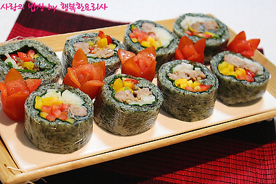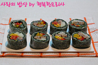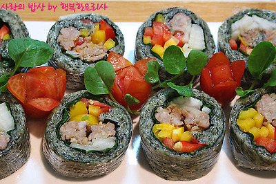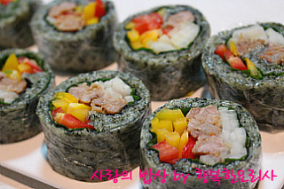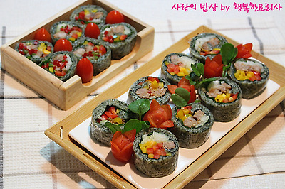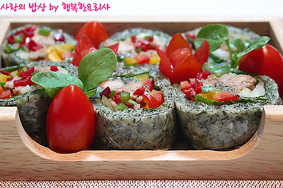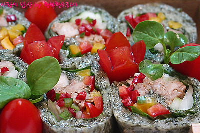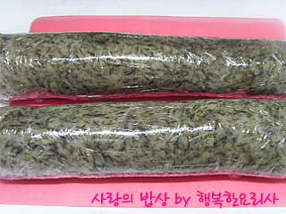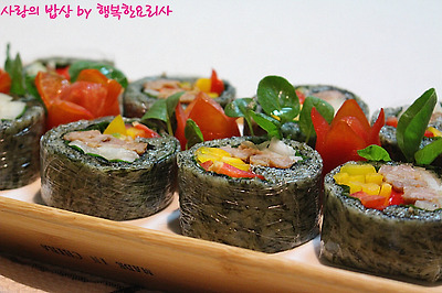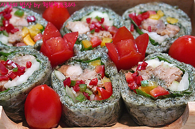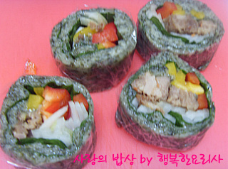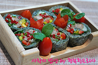 파프리카 채썬것을 올려 김밥말듯이 만다.