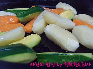 당근을 볶다가 호박을 넣어 볶으면서 약간의 소금으로 간한다.