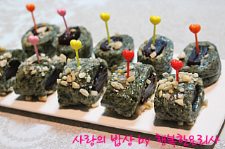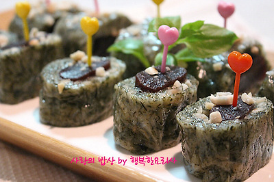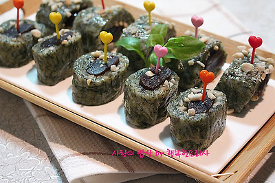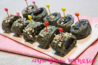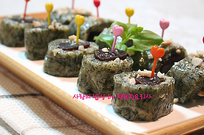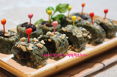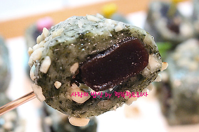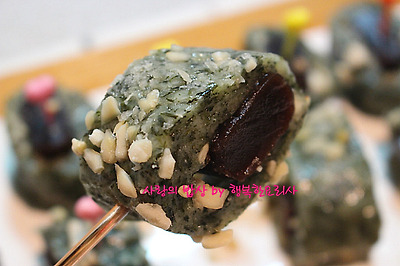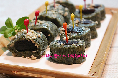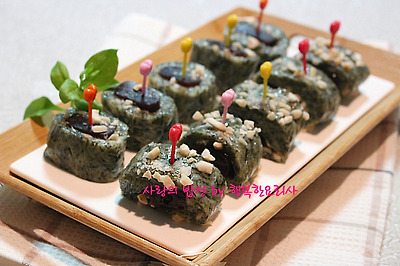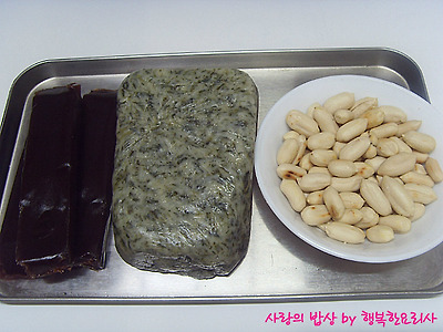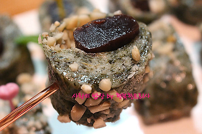콩비지와 함께 쑥찰떡을 가지고 나와서
