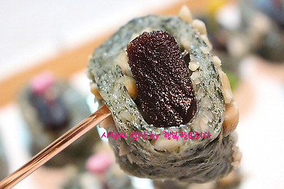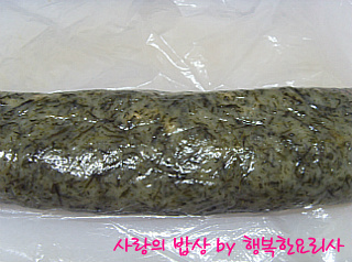 그 위에 양갱을 올려 단단하게 돌돌만다.