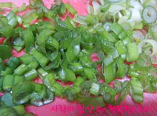 송송 썬 대파, 검은깨, 통깨를 뿌린다.