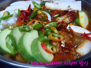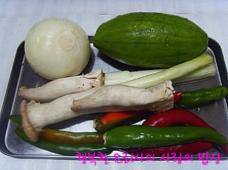 청양고추3개,홍고추2개,대파1대,멸치다시마국물2.5컵.