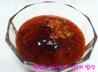참기름1숟갈씩,설탕,고추장1/2숟갈씩,다진생강 약간.
