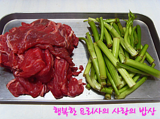 소고기250g,미나리2줌,포도씨유,소금 약간씩,물2숟갈.