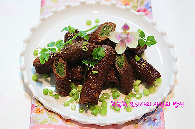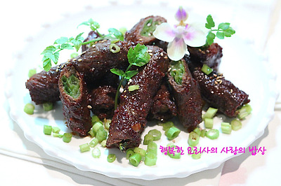 8. 접시에 담고 잘게 썬 미나리를 끼얹는다.