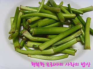 2. 손질한 미나리는 먹기좋은 길이로 썰어 소금 약간을 넣는다.
