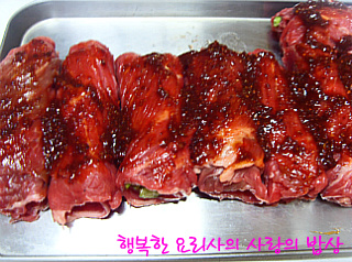5. 3의 소고기말이에 4의 양념을 골고루 발라준다.