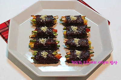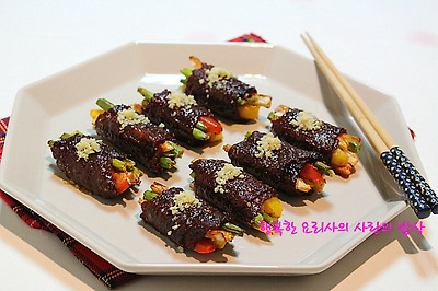 먹을 수 있는 소고기더덕말이랍니다. 군생활
