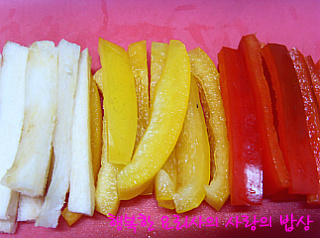 파프리카(빨강 노랑)1개씩,녹말가루,잣가루1숟갈씩.