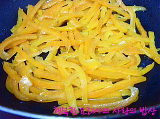6. 팬에 포도씨유를 두르고 당근, 파프리카(노랑,주황,빨강),