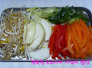 소불고기(재운것)600g,숙주3줌,대파1대,양파1/2개,