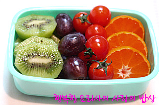 썰어 도시락 용기에 담고 과일을 곁들인다.
