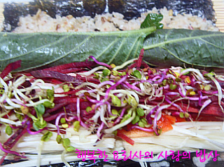 채썬비트, 새싹채소를 올려 단단하게 만다.