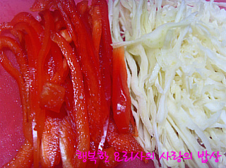 2. 파프리카, 양배추는 채썰어 준비한다.