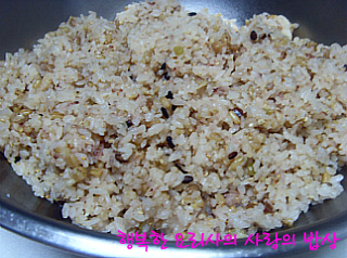 1. 잡곡밥에 소금, 깨소금, 참기름을 넣어 골고루 섞는다.