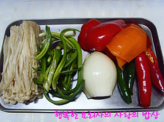 2. 팽이버섯, 파, 양파, 파프리카, 씨를 뺀