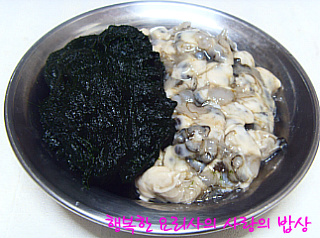 굴은 소금물에 흔들어 씻어 물기를 뺀다.