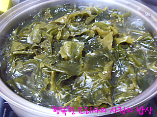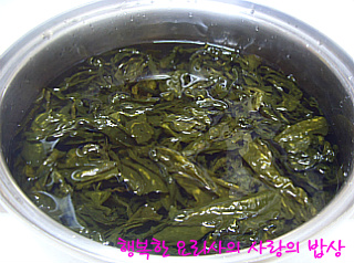 3. 냄비에 미역을 넣어 볶다가 물을 붓고 한소끔 끓인다.