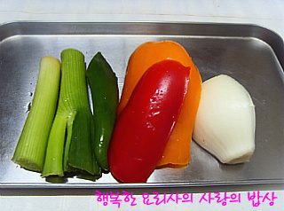 1. 대파, 씨를 제거한 풋고추, 파프리카(빨강,주황)