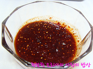 양념장: 고추장,고춧가루,간장,청주,올리고당1숟갈씩,