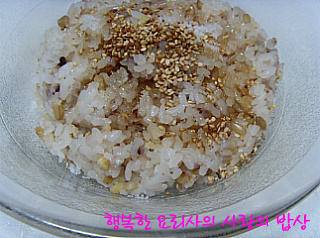 1. 잡곡밥 적당량에 소금, 참기름, 통깨를 넣어 골고루