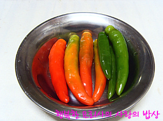 용기에 각각 담고 어슷 썬 청양고추를 넣는다.