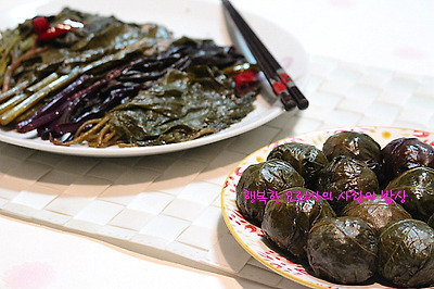 2. 장아찌( 머위,케일,유채,깻잎,비트잎)한장을 펴고