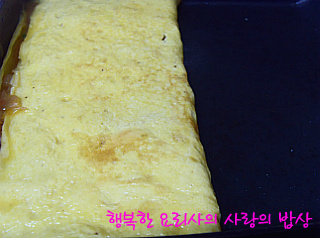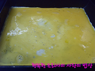 6. 팬에 포도씨유를 두르고 5의 달걀물을 부어 한쪽 면이 익으면