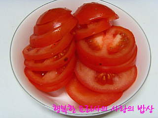 2. 토마토는 먹기좋은 크기로 저며 썰고 양파는 채 썬다.