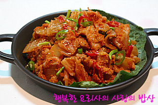 삼겹살을 넣어 볶았습니다. 비지찌개에
