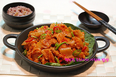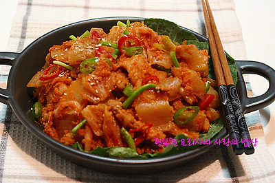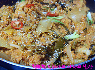 동서가 알려준 대로 배추김치에 비지, 남아있던