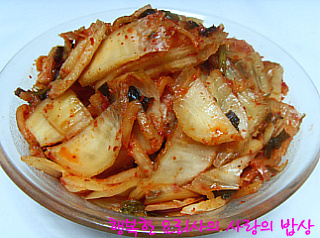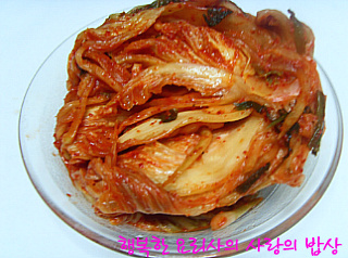 1. 배추김치는 먹기좋은 크기로 썬다.