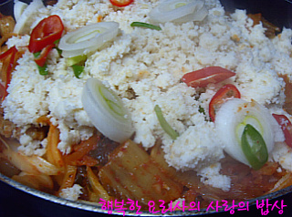 삼겹살200g,비지2컵,배추김치(소)1/2쪽,홍고추,청양고추