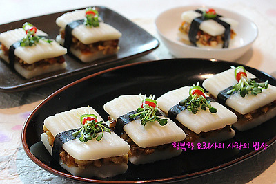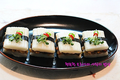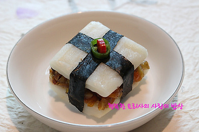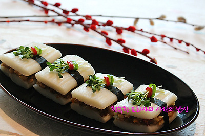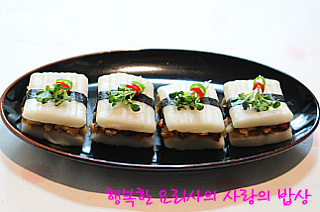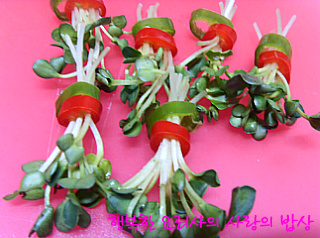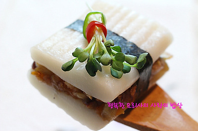 4. 3의 절편은 김띠를 두르고 무순을 올린다.