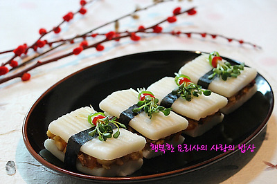2. 먹기좋게 잘라 찜기에 쪄낸 절편은 들기름을 바른다.