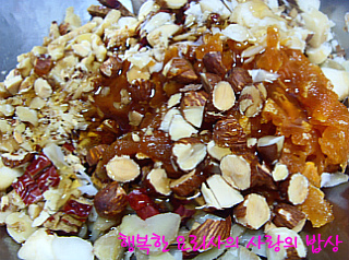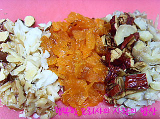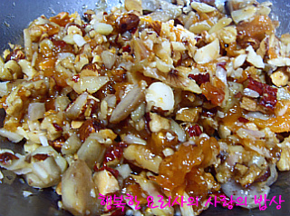 궁여지책으로 여러가지 견과류와 곶감, 대추를 꿀에 버무려