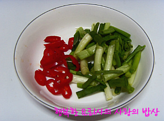 3. 2에 먹기좋게 썬 쪽파, 홍고추를 넣은 후 허브솔트로