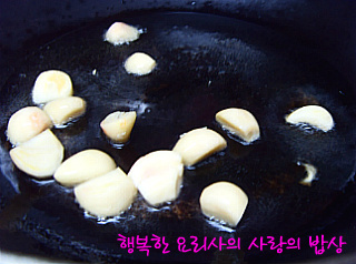 2. 팬에 포도씨유를 넣고 마늘을 볶다가