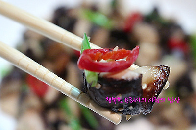 생표고버섯7개,쪽파5줄기,깐마늘10개,홍고추1/2개,