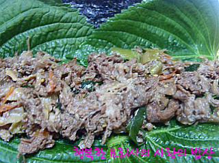 불고기, 참나물무침을 잘게 썰어 골고루 섞는다.